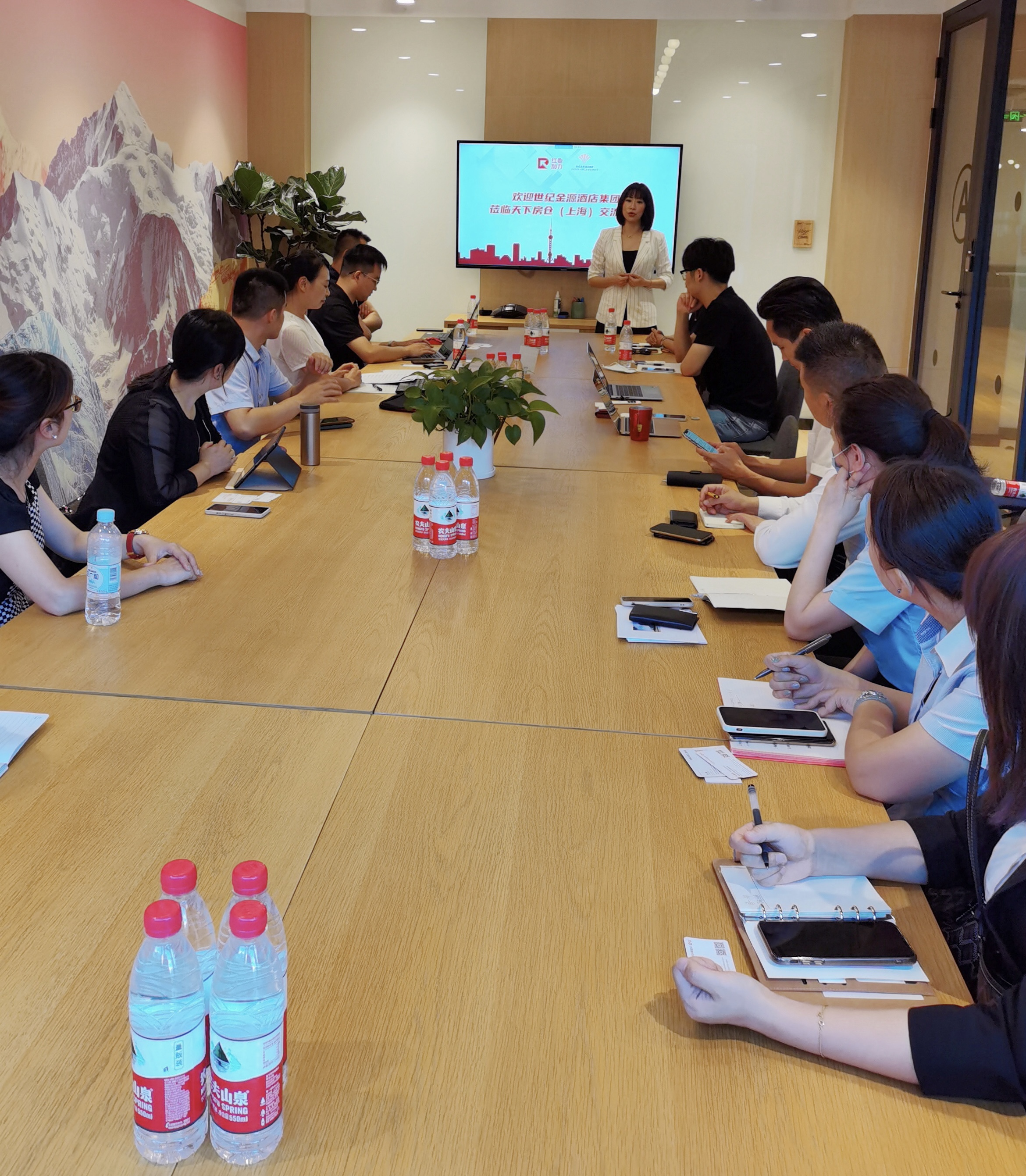 7月21日,红色加力与世纪金源酒店集团及甲方企业级客户进行了一场诚挚的会面交流。天下房仓副总裁沈穗菊女士对世纪金源酒店集团、汇联易、最福利的来访发表欢迎致辞。天下房仓副总裁沈穗菊会上,世纪金源酒店集团销售刘磊女士代表世纪金源酒店集团向红色加力及企业客户表示感谢,随后向大家介绍了酒店集团的市场定位酒店特色